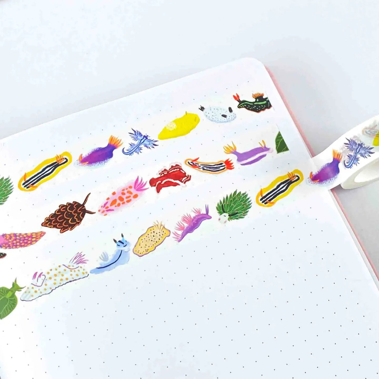 This washi tape features a variety of nudibranchs, commonly known as sea slugs, which can be found in our seas around the world.