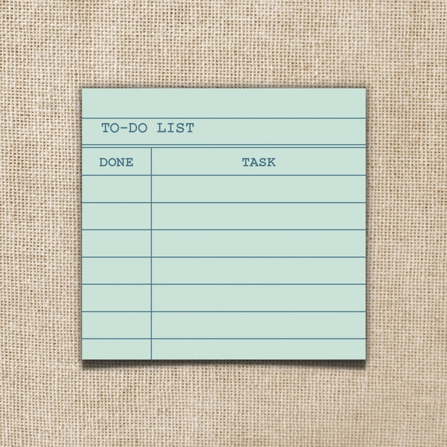 ¡Nuestro popular bloc de notas con lista de tareas pendientes con forma de tarjeta de biblioteca vintage, ahora en versión mini como nota adhesiva!