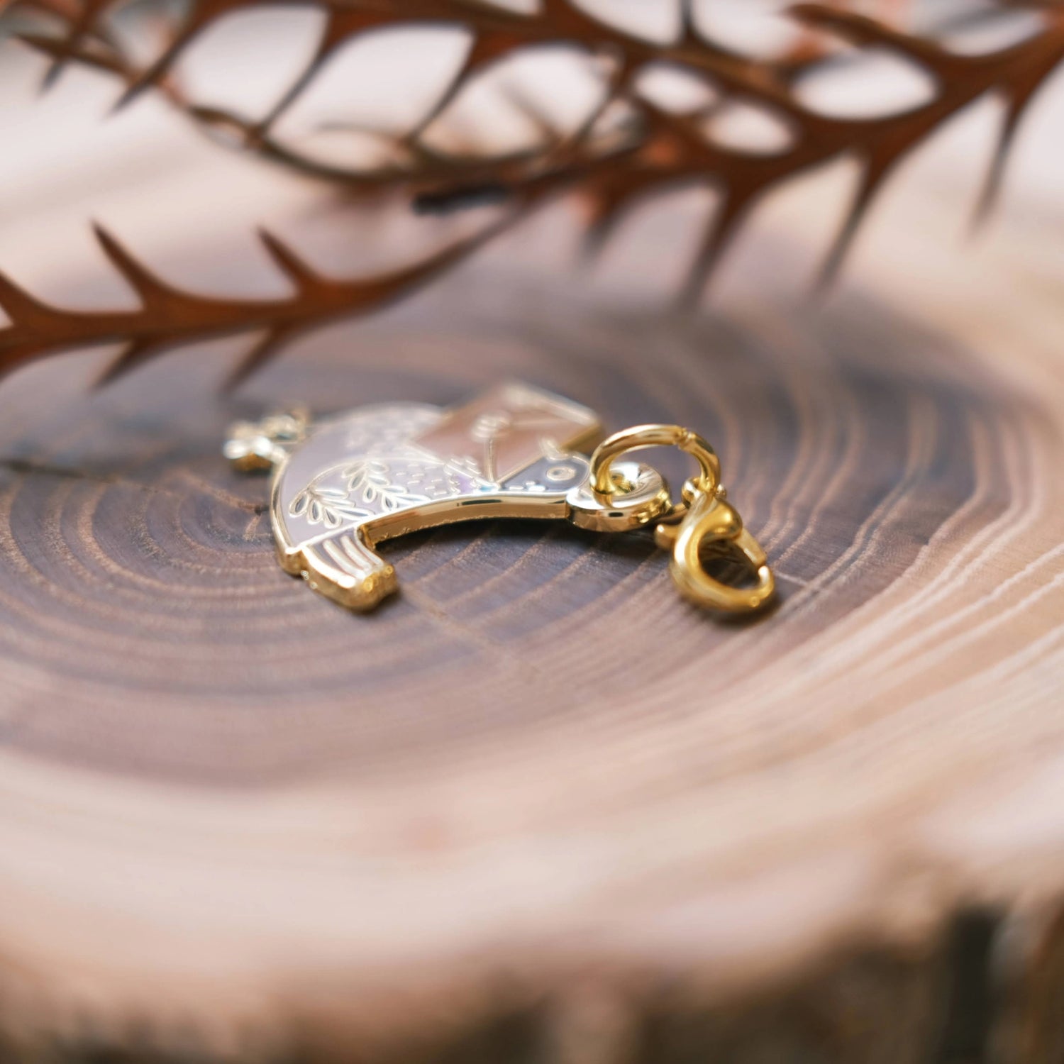 Personalize and add a quirky touch to your notebook or journal with this illustrated enamel charm.
