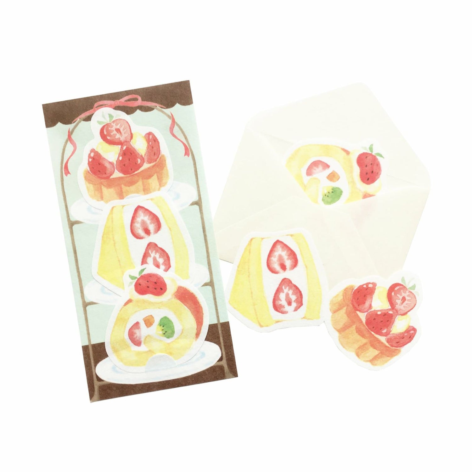 Juego de cartas con diseño de sándwich de fresa: papeles para escribir y sobres, fabricados en Japón.