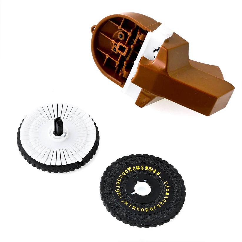 Una máquina para hacer etiquetas con relieve clásica con cinta de 0,4" de Penco. Viene con un rollo de cinta negra y opciones para configurar el tipo de letra en mayúsculas o minúsculas.