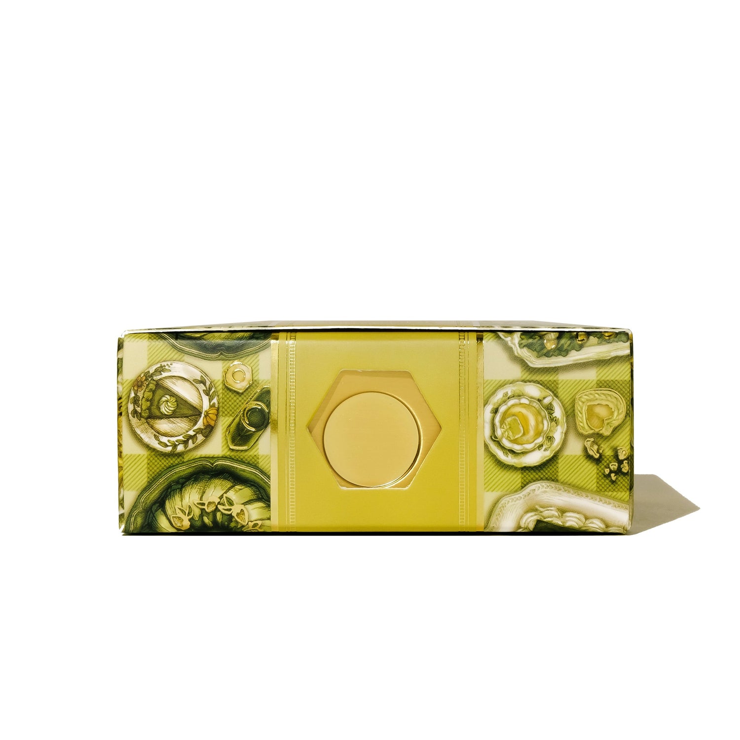 Gather ‘round and take a seat, you won’t want to miss a bite of this delicious spread! Our impeccable hostess, Bearnice has diligently prepared a retro feast for both our eyes and our taste buds, with nostalgic gelatin treats and shimmering aspic dishes moulded into intricate shapes, all studded with fruits, vegetables, and even seafood! Celebrate the stranger side of culinary history with this unique deep lime shade, dotted with dazzling golden shimmer.