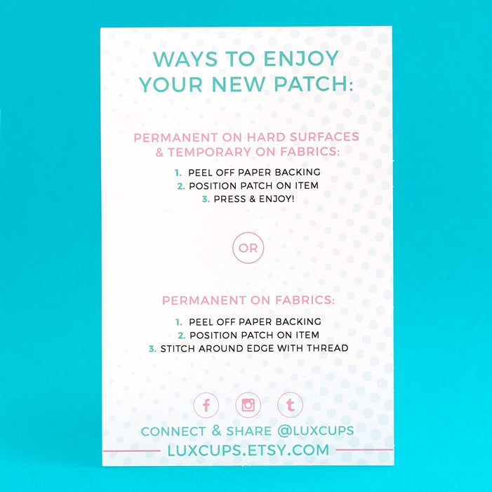 4'' fuzzy plush embroidered patches with adhesive backing for easy application. Can also be sewn on. Individually packaged on 4" x 6'' backer cards inside hanging cello bags.