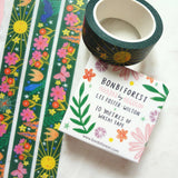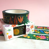 Last Chance! A pretty dark green washi tape with the sun, florals, creatures and a smattering of stars, a celebration of our beautiful world!