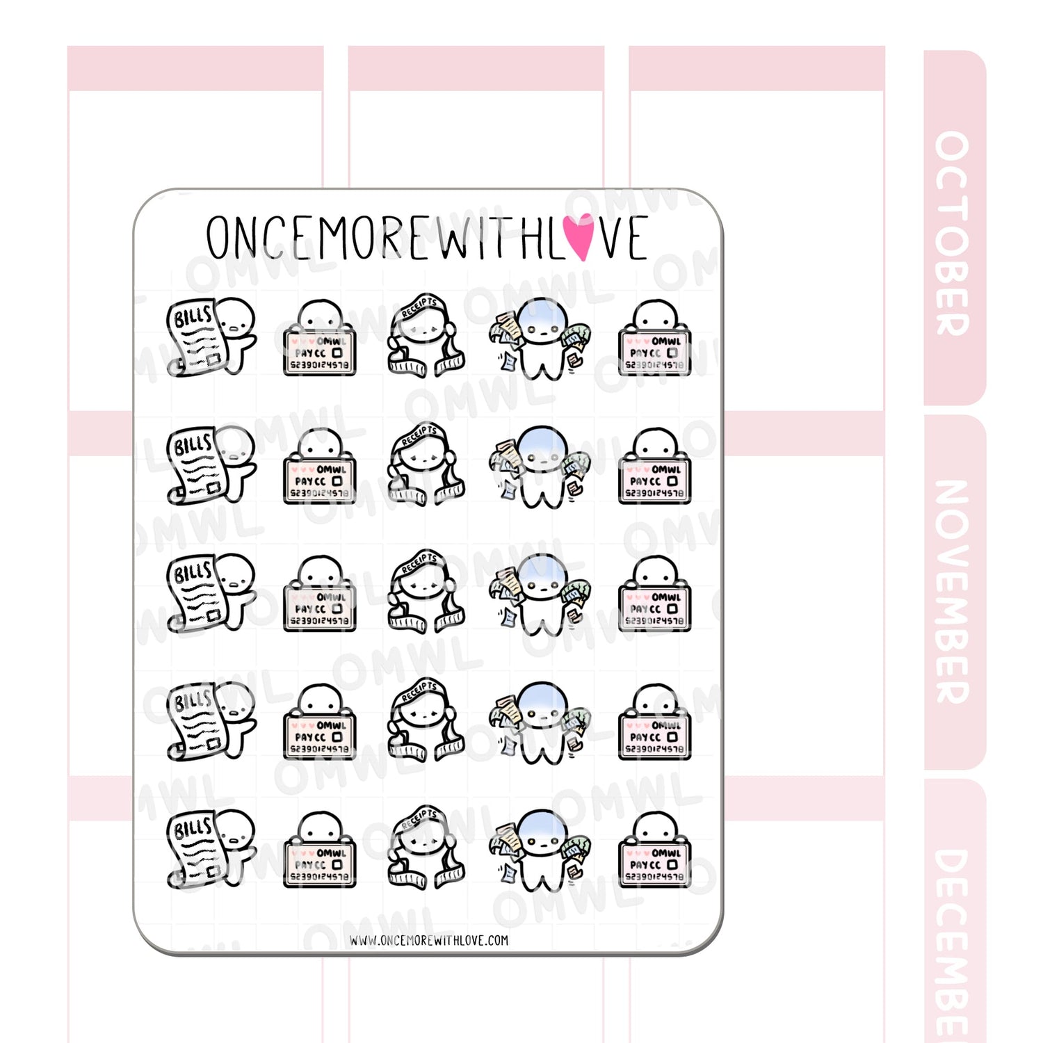 Once More With Love M734 Bills and Receipts Tax Time Sticker