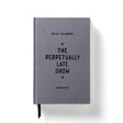 - Features a cloth-bound cover with embossed 'The Perpetually Late Show' artwork.