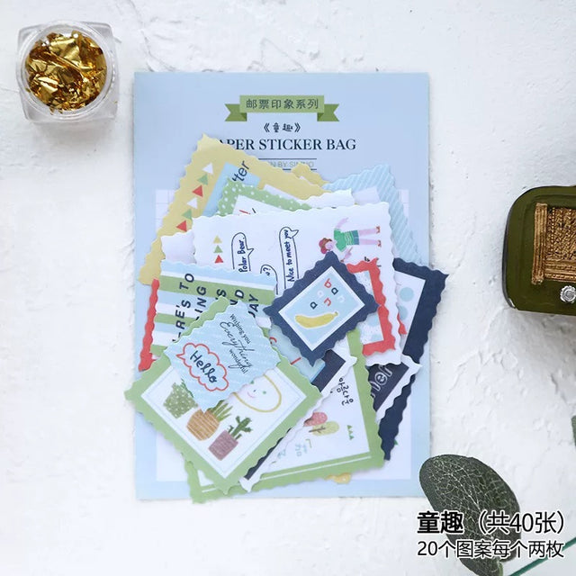 Childhood Stamp Washi Flake Sticker. These fun flake stickers for any and every occasion! These individual flake stickers are perfect for swaps, favors and happy mails. Use these stickers every day on your junk journal, rustic planner spreads, cards, photo album, frames, gift wrap, stationery, scrapbook pages, calendars and more to personalize your world.