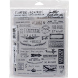 Correspondence Tim Holtz Cling Stamps including Air Mail, Special Delivery, Stamp, US Airmail Service, Handle with care, Air Letter, Letter, Post office and etc. These red rubber stamps come mounted on cling foam so you can use them with any acrylic block (sold separately). Great for using with Tim's signature distressing techniques! Stamps come on a 3-hole punched sheet for easy storage in the Tim Holtz Stamp Storage Binder (also sold separately)