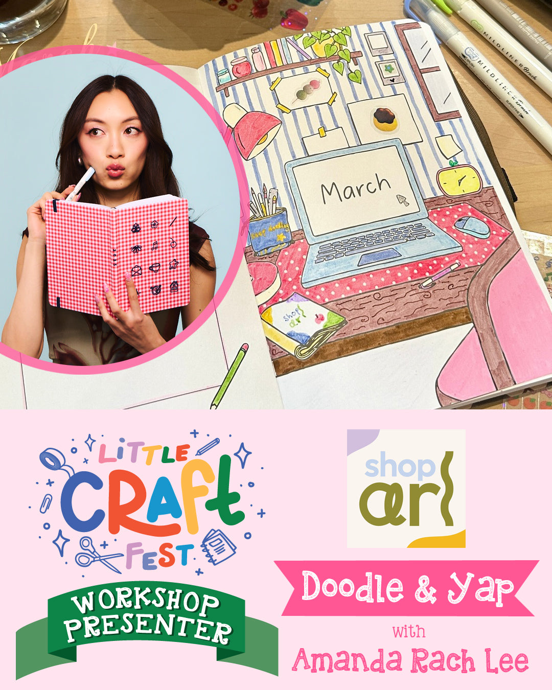 Pens, markers and extra stationery will be provided, please bring your own journal or notebook to doodle in. All guests will receive a free download of the 2025 Digital Doodle Planner, as well as a Shop ARL sticker sheet.