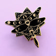 If you love dragonflies, this awesome pin is perfect for you! This intricate black dragonfly design features 6 moon phase symbols set against a glittery black star. Perfect for anybody wanting to add some natural witchy vibes to their outfit!