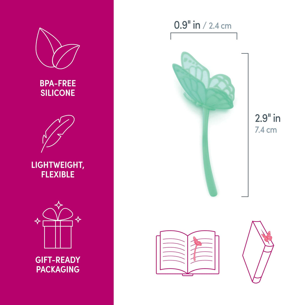 As the pages fly by, Fred’s Fluttermarks will keep you right on track! These delicate butterfly bookmarks gently hold your place, letting your imagination soar without losing your spot. Each set includes 3 vibrant silicone bookmarks that are perfect for any book lover. Packed in a full-color, peggable blister card. Design by Charlotte Saul, Fred Studio.