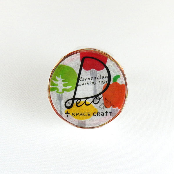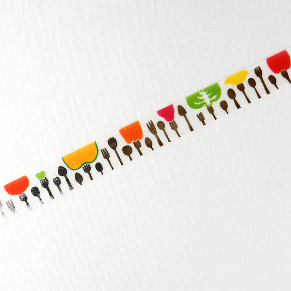 Round Top Masking Tape Fork & Vegetables Silver Foil. Made in Japan.