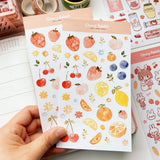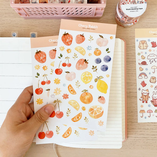 Cherry Rabbit Watercolor Fruits Sticker Sheet 044