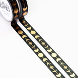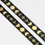 This washi tape pattern displays the different phases of the moon in gold foil on a black background. The washi tape is 10mm wide and 10m long and it gives an elegant and mystical look to everything you decorate it with.