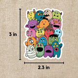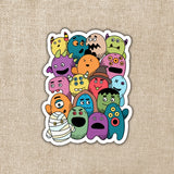 Bright, happy pile of monsters ready to celebrate Halloween! Perfect for kids.