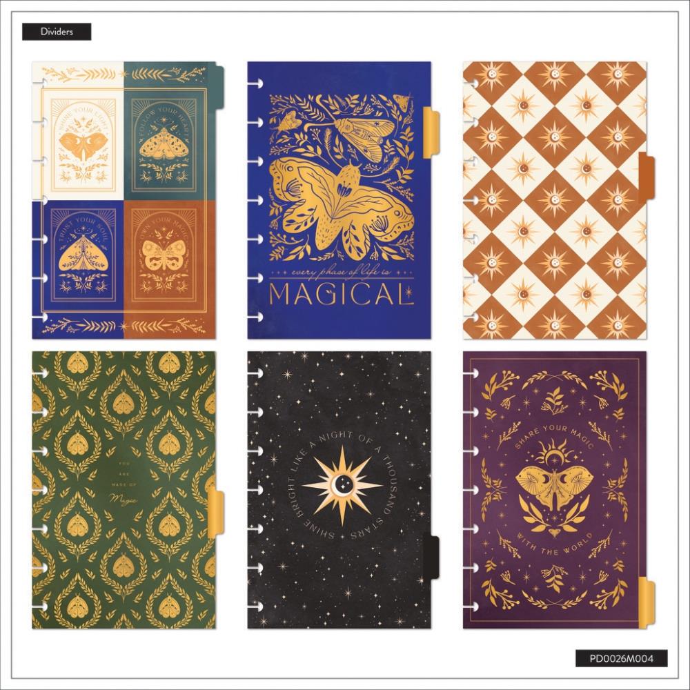 Follow the moon and stars with this Share Your Magic undated Happy Planner. This Mini planner features a horizontal layout was made for traditional planner who love listing. The 12 dividers feature mother, butterflies, and moons and stars. Keep the wonder in your organization with our disc bound planners. This Share Your Magic 12-month mini planner includes undated monthly calendars and weekly spreads. The horizontal layout was made for the traditional planner! This simple design has daily lined box spaces and NEW daily checklists for tracking to-dos, jotting down errands, and prioritizing tasks. The Mini size Happy Planner is ideal for the busy planner. This design features rich colors, celestial accents, interesting insects, and gold foil.
