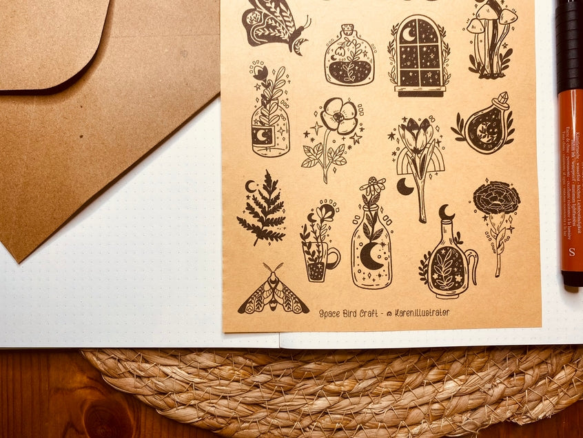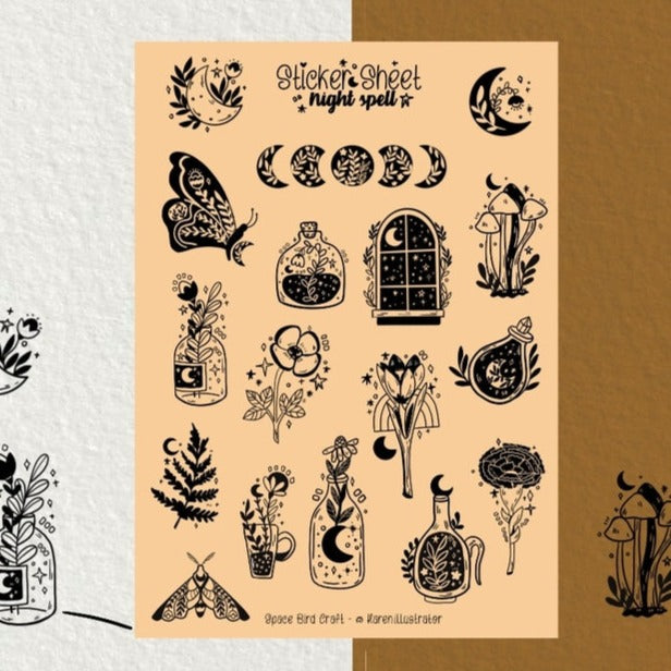 Kraft Night Spell Sticker Sheet - Bullet Journal Stickers