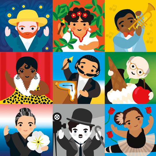 Mudpuppy's Little Artist 500 Piece Family Puzzle is comprised of colorful illustrated portraits of inspiring artists who have made a historical impact with sculpture, music, performance, or painting.