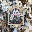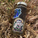 Original 'Lunar Opossum' illustration. It measures 3" x 2.5". It is a high-quality glitter holographic vinyl sticker, very durable and smooth with a water-proof protective laminate.