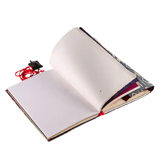 This Lamali Mixed Media Brocade journal is the perfect gift for multimedia artists; it includes different paper types for drawing, sketching, or water media. They are unique because they are handbound of thick Nepalese thread and are complete with a red beaded leather tie embellishment to close and tie quickly.