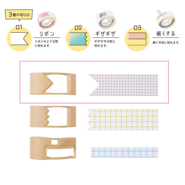 Transform your 15mm washi tapes into shapes like banners, arrows and flags with the Kutsuwa Ribbon Bon Tape Cutter! This cutter is designed to cut washi tapes into ribbon shape. You can also use the other end of the cutter for a nice clean edge.