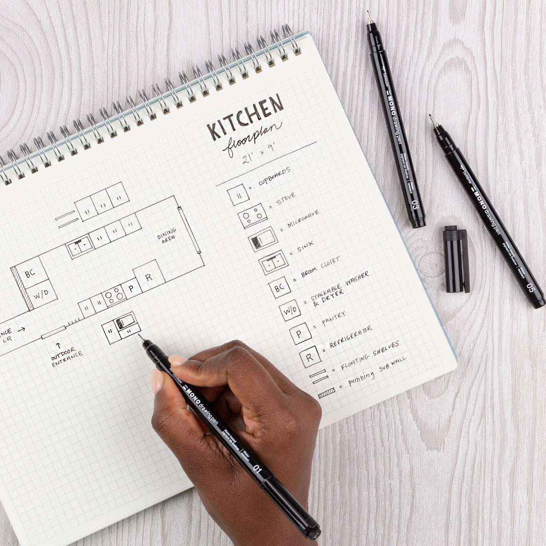 Water-based pigment ink drawing pens produce smooth, skip-free drawing and writing with no smudging. Ink is light resistant and dries instantly! Long metal nib allows for clear visibility when drawing. Excellent nib strength withstands firm pressure without bending tips, ensuring steady ink flow. Great for use with colored art markers and colored pencils. Produces excellent results when used with drawing, marker, watercolor and mixed media paper. Ideal for illustrations, technical drawings, manga, anime, lettering and journaling. Create precise drawings with 3 tip sizes – 01, 03, 05.