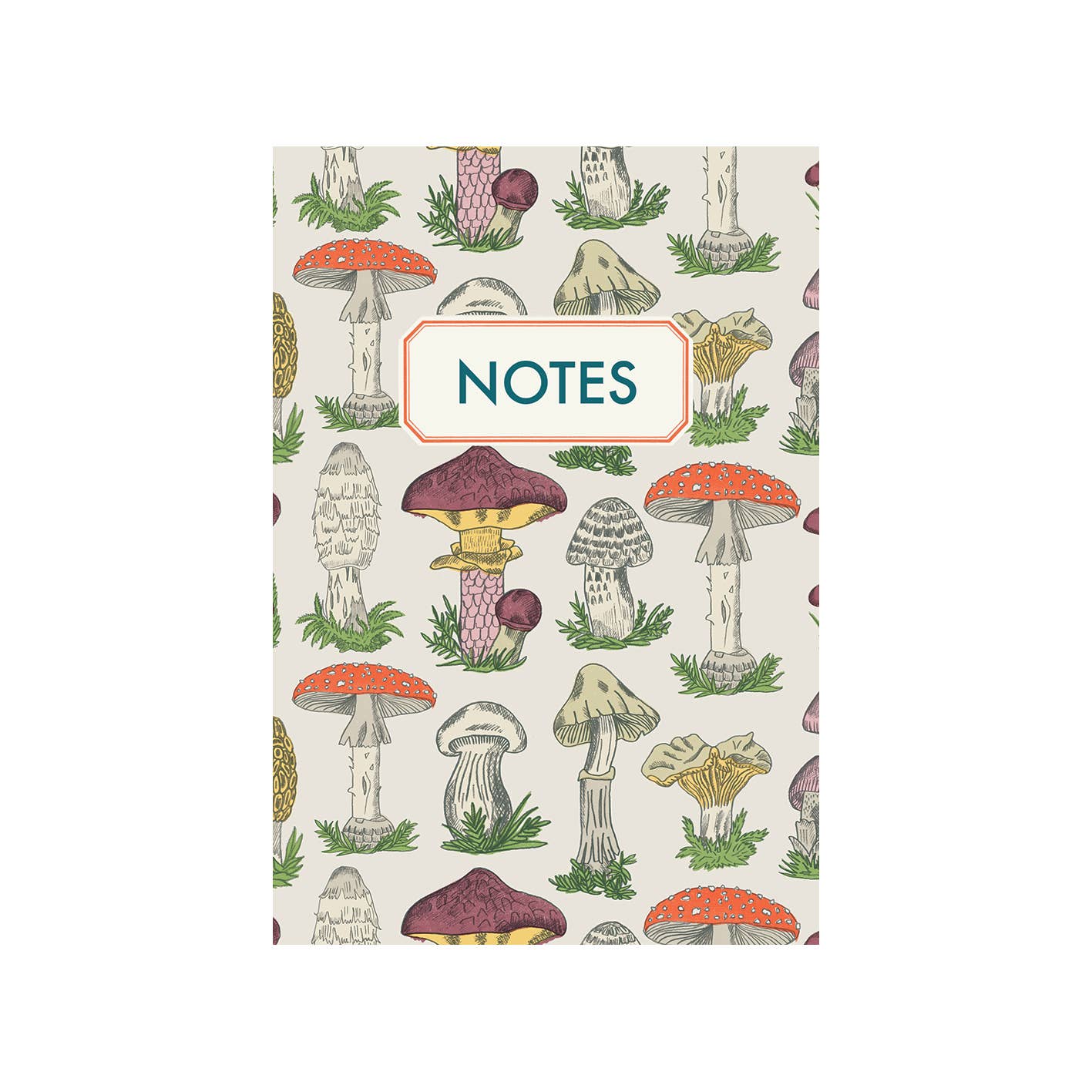 Mushroom design lined notebook, inspired by our collection of vintage books, from original drawings by Darrell at Sukie. The 144 lined pages are printed on smooth cream 90gsm Munken paper, manufactured in Sweden with strong environmental credentials.