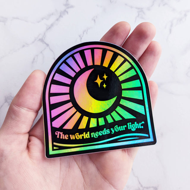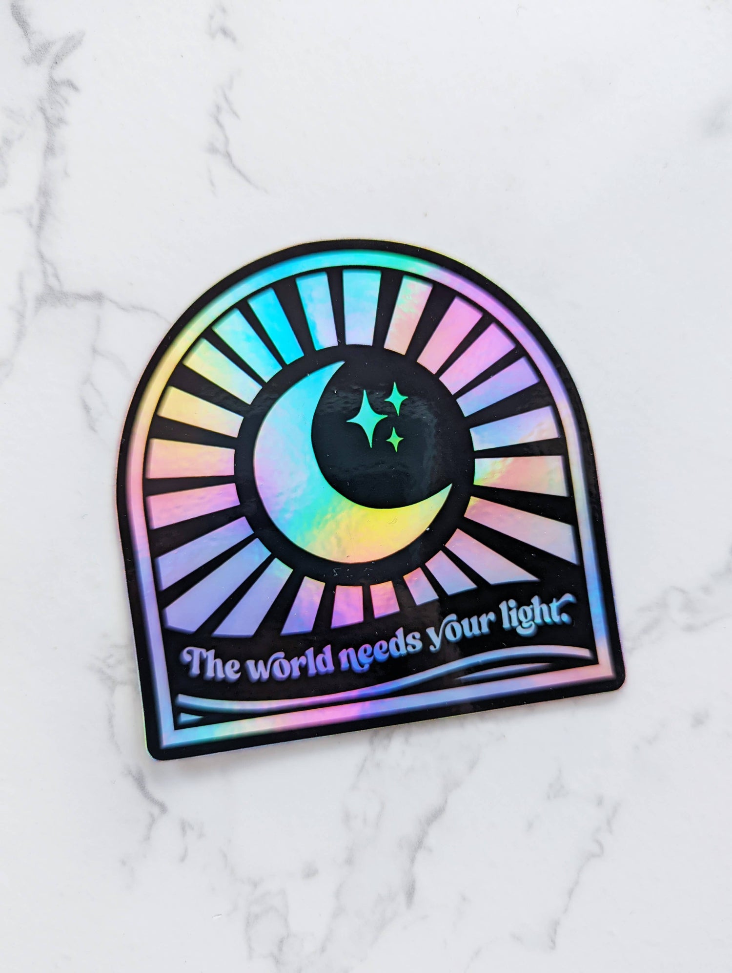 Holographic Sun & Moon Sticker • The World Needs Your Light