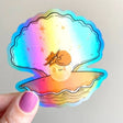 Holographic oyster and sleeping cat sticker! This holographic sticker looks different in every angle. It will look amazing on your laptop, phone or stationery!