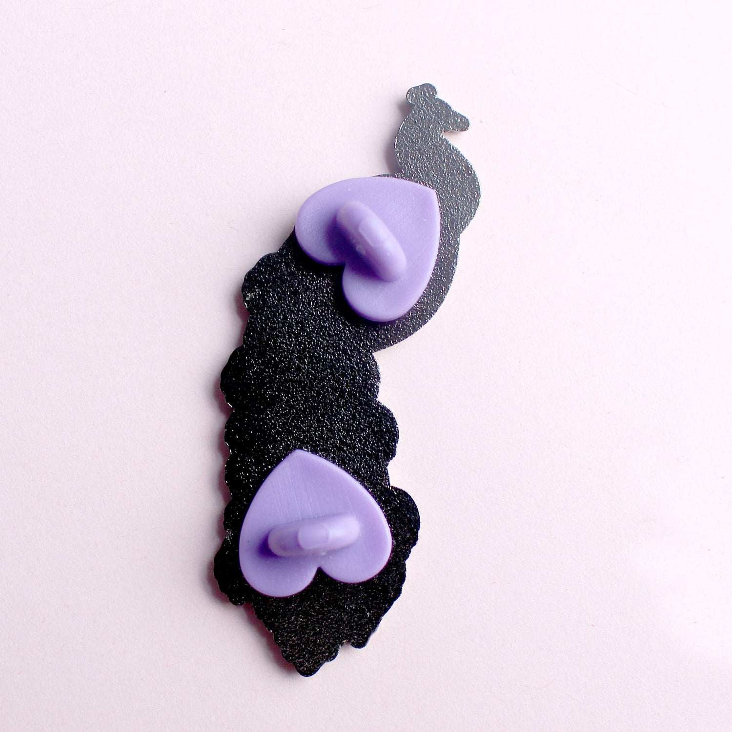 If you love peacocks this majestic enamel pin is the one for you! This large 60mm enamel pin features a stunning peacock in all its blue, green and purple glory. A perfect match for my Phoenix pin. It’s secured by two purple pin backs and comes on a Glitter Punk backing card.