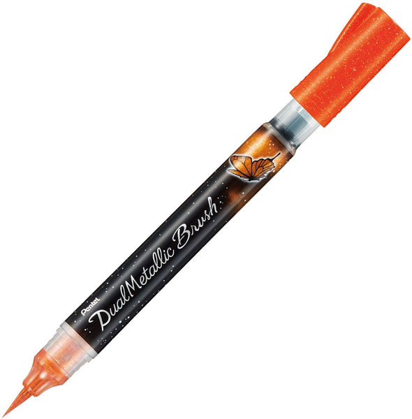 Pentel Dual Metallic Brush Pen - Orange and Metallic Yellow