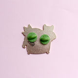 Any cat owner who has tried to keep their furry friend away from their best plants knows what a challenge it can be! This cute little pin captures the moment the cat successfully snuck into the plants for a nap! It features a black and white cat surrounded by foliage, secured with two pink rubber clasps and is presented on a cute Glitter Punk backing card.