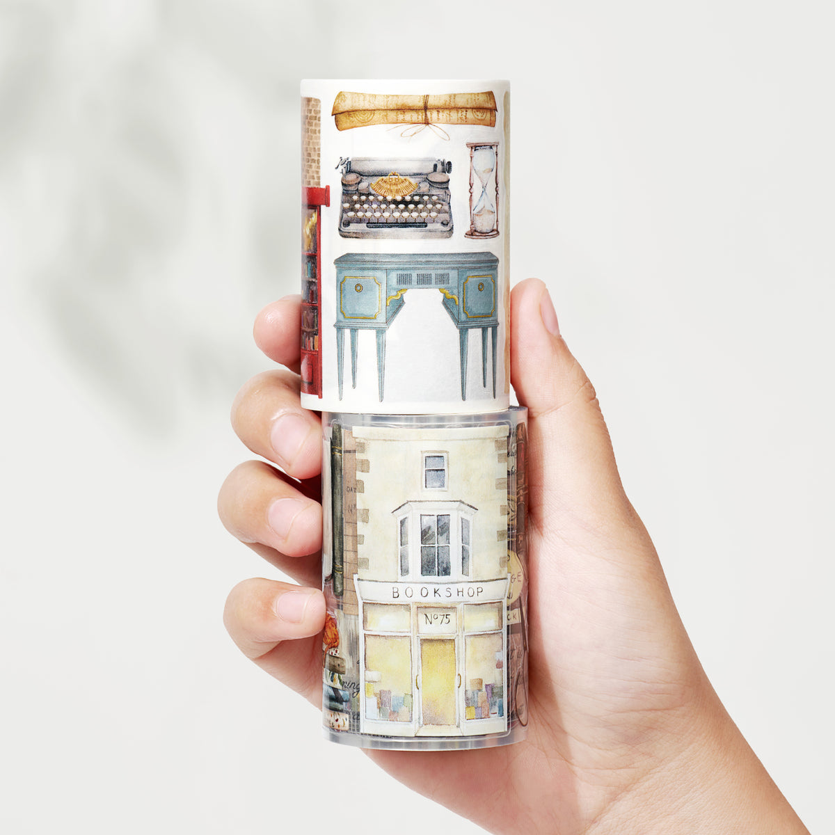 Step into a world of old libraries, where curious cats roam among dusty shelves and vintage books. This tape brings an elegant, nostalgic feel to your journaling and crafting, with beautifully detailed designs of cats lounging in an antique library setting. Whether you’re creating dreamy layouts or wrapping a special gift, this washi and PET tape adds a timeless touch to all your projects. With pre-cut designs, it’s as easy as peel, stick, and enjoy!