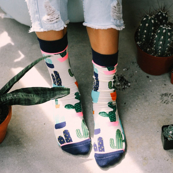 You can pick this prickly pear by the paws. Our design team added some bright pops of hot pink to make these socks stand out. They are a classic take on the ever so popular succulent.