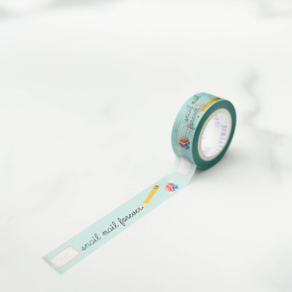 One roll of our Snail Mail Forever Lined washi tape to deck out your snail mail, journals, gifts, and envelopes - whatever your heart desires!
