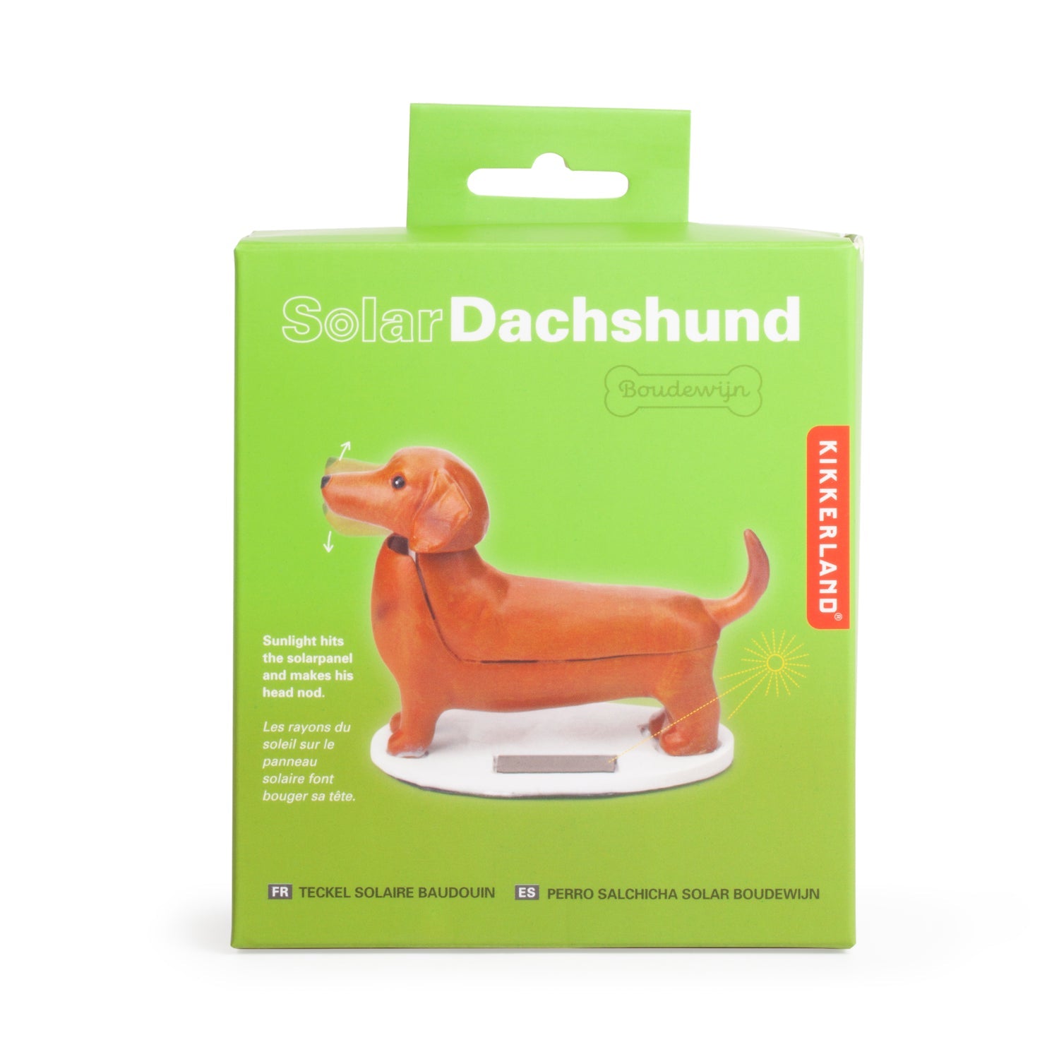 Acccompany our beloved solar queen with a Daschund companion to match! Sit him in the sun next to the queen and watch as he greets you with s playful head nod.