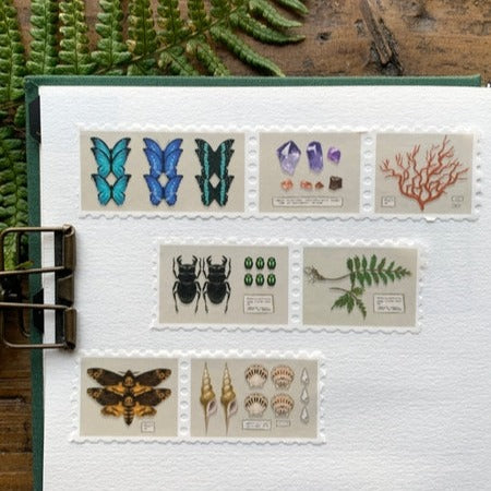 25mm x 5m stamp washi roll with ten different designs with perforated edges. Featuring edible plants and mushrooms. ***This is not actual postage. This is a decorative item only***