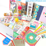 Watch the videos so you'll have a better idea what our surprise boxes like, one thing for sure is I am a Tetris pro so your box will be super jam-packed-filled-to-the-brim with anything from vintage to cute things! Our shop sells a lot of bright, cutesy craft supplies, and that will definitely be in the box.