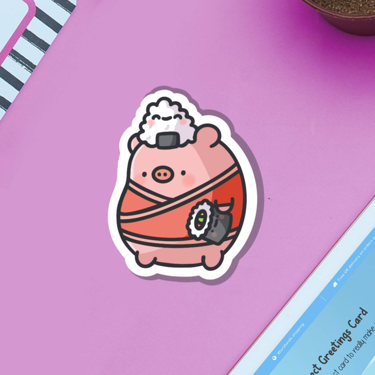 Made from high quality permanent adhesive, this adorable sushi pig illustration will look amazing on any flat surface and is perfect for sticking on anywhere you wish without having to worry about him getting damaged or fading.