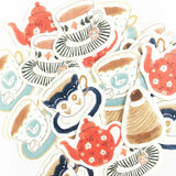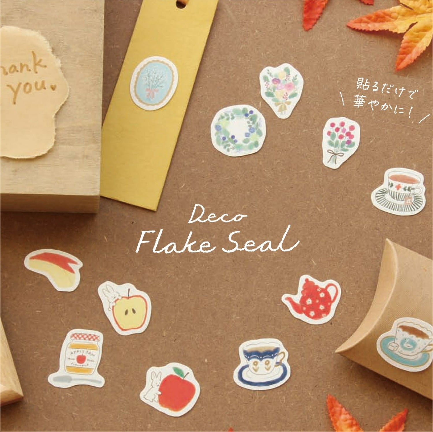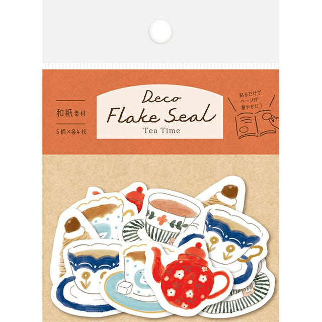 Tea Time Flake Sticker, made from Japanese Paper. Slit-type seal that is easy to peel off.