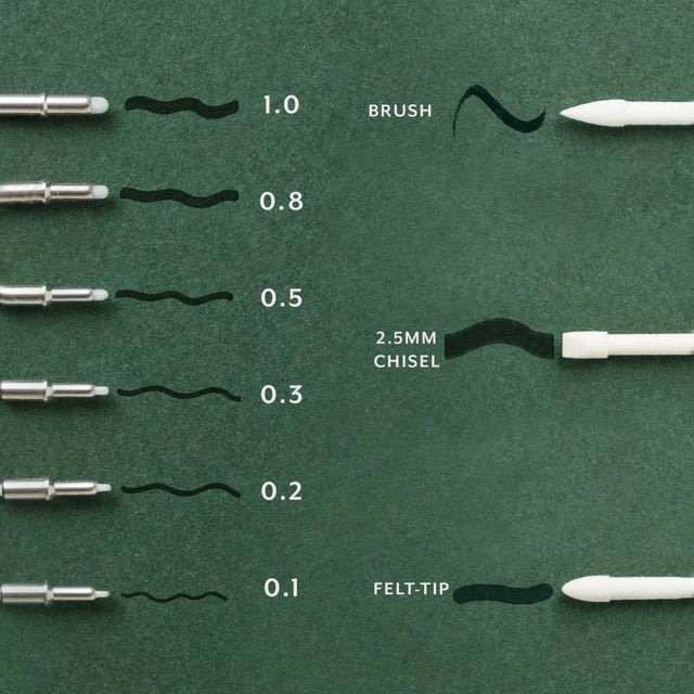 - Nib sizes do vary by manufacturer (e.g., Sakura, Staedtler). Ours tend to be smaller, so advise to size down from customers usual preference.