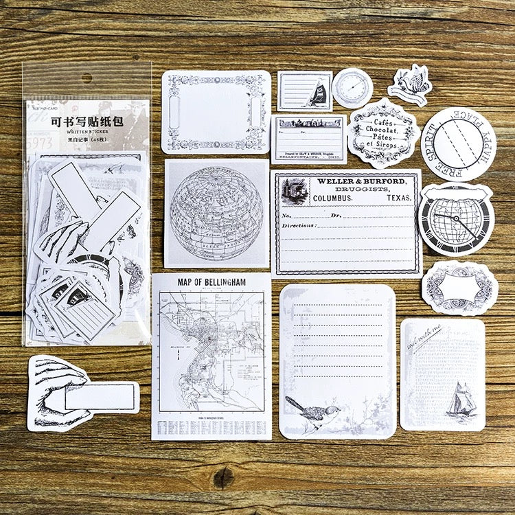 Vintage Label Writable Flake Sticker (45 pieces)