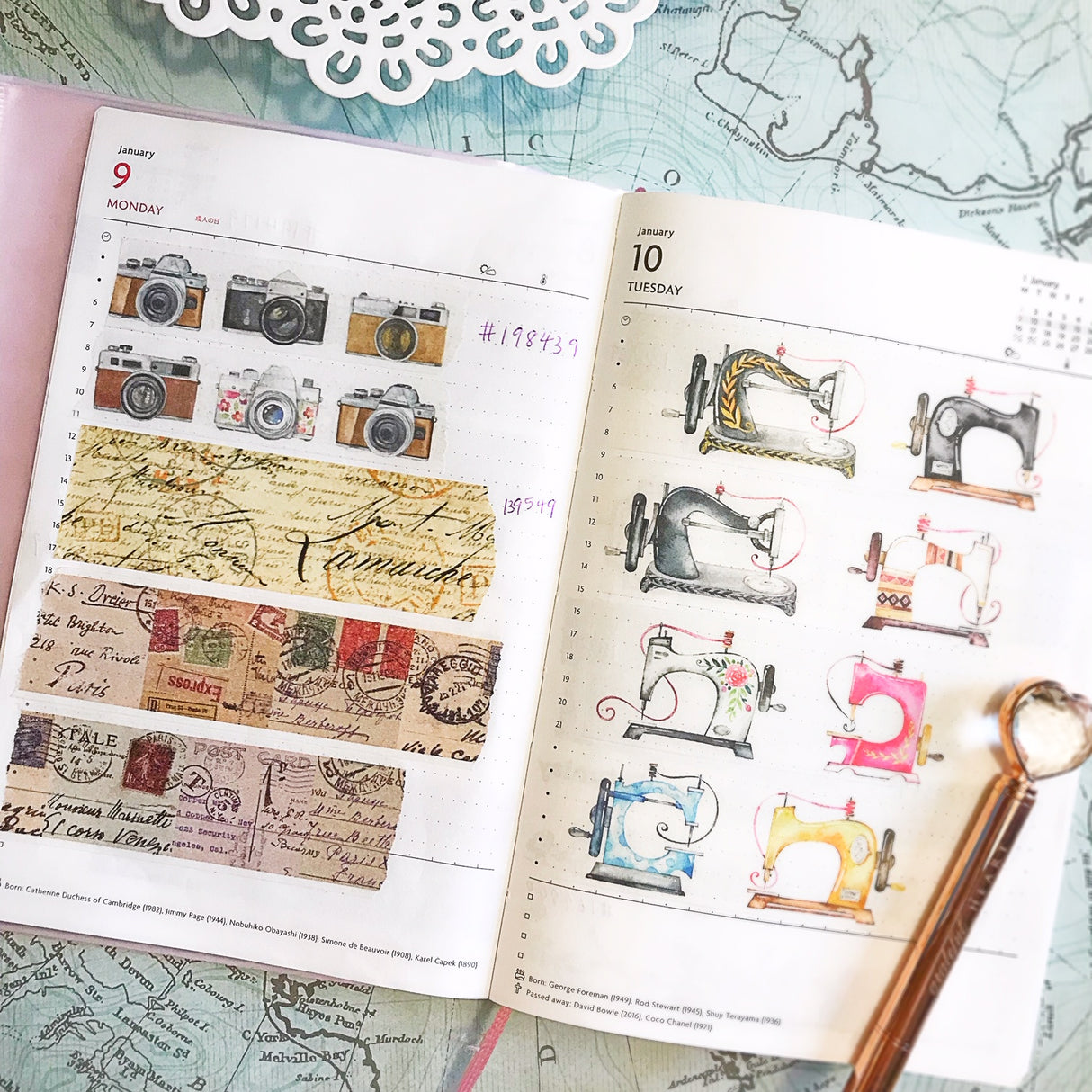 Vintage Postmark Postcard Washi Tape. Perfect for your rustic journal spreads. Use these tapes as a border to make unique scrapbook pages! This tape has the perfect amount of adhesive; letting the tape hold firm when it needs to and; if needed; being able to remove with minimal chance of tear.