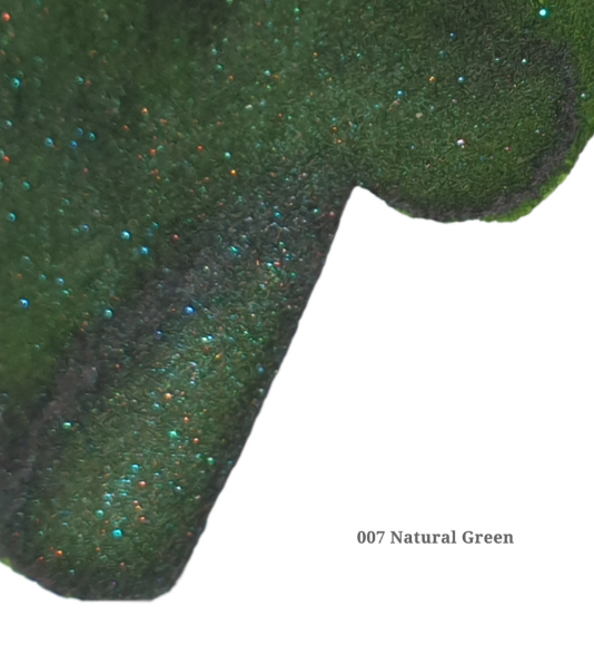 Our glitters are made from eco-friendly materials and feature small, low-cohesion particles (up to 50㎛), ensuring smooth flow and minimal clogging. We are continually researching and improving our Pearl Series inks to make them perfectly suited for fountain pen use. Additionally, we only use cosmetic-grade glitter that is harmless to the human body.