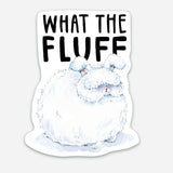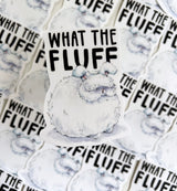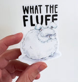 "What The Fluff" hand lettering above a very fluffy bunny original watercolor illustration! She's ready to adorn water bottles, phones cases, and more! This sticker is die cut, durable vinyl and waterproof. It is roughly 3"x 3"
