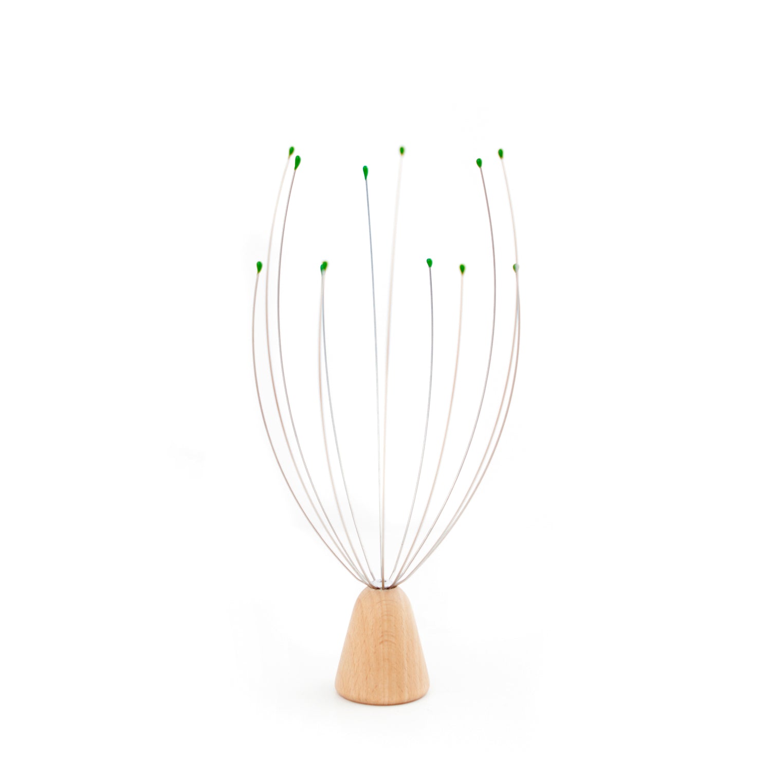 Unwind and relieve excess stress. These head massagers relieve tension and increase blood circulation by softly massages acupressure points and stimulating sensitive nerves in your scalp. Wood base for upright storage.